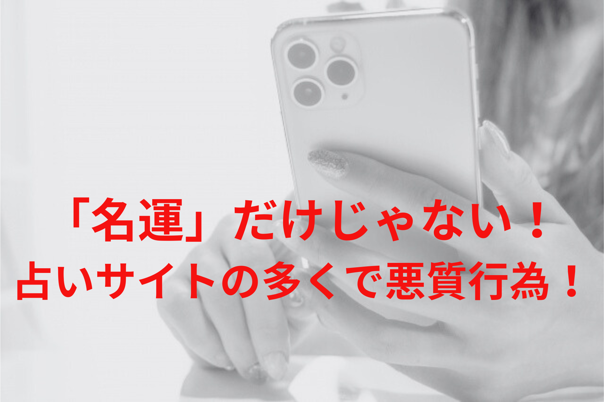 「名運」だけじゃない!占いサイトの多くで悪質行為インターネット上の占いサイトは、場所や時間を選ばずに手軽に利用できる便利なサービスです。複数の市場調査によると、日本の占い市場全体は約1兆円規模と推計されています。占い市場の中で、インターネットを介した占いサービスは大き…
